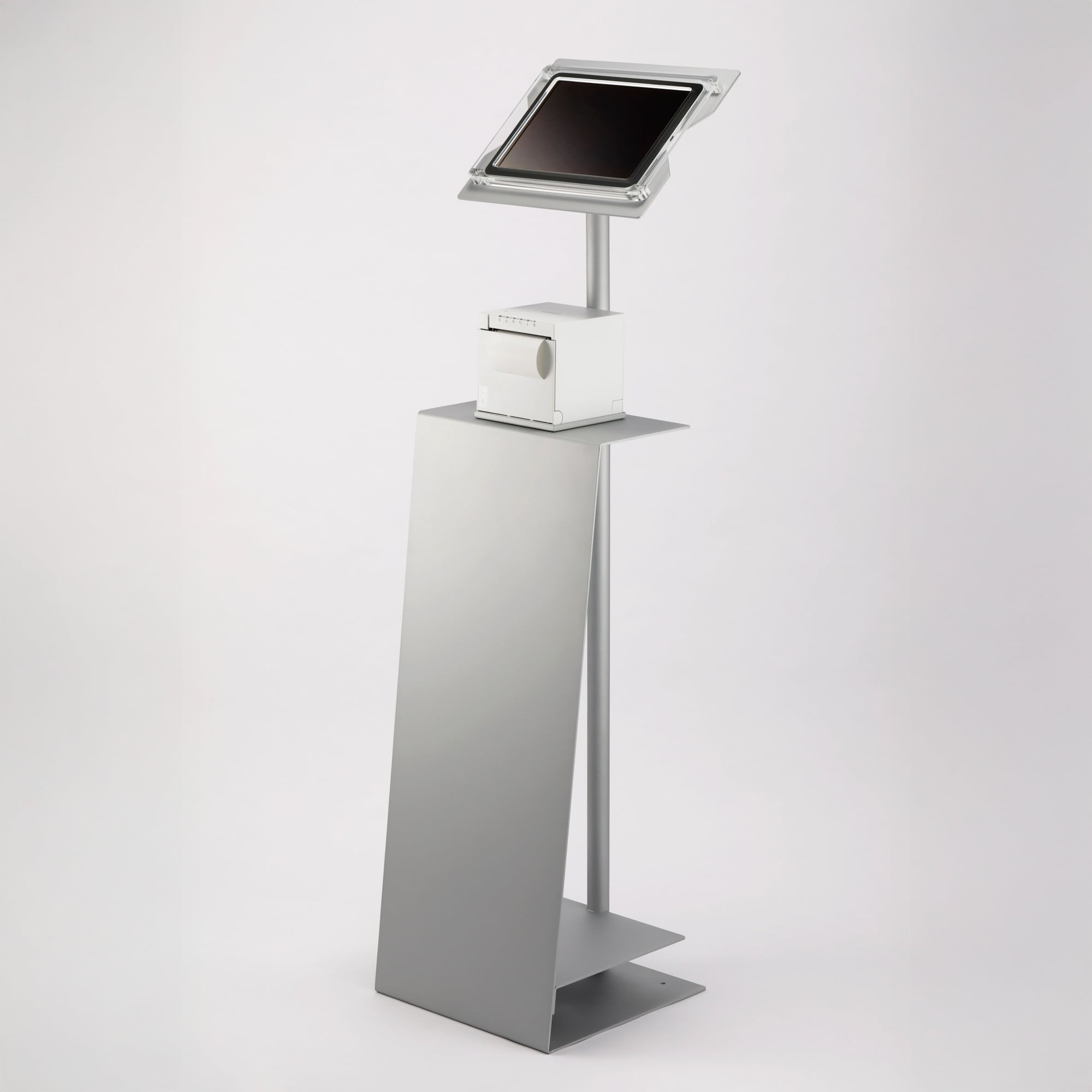 iPadフロアスタンド『T4+ Floor』<12.9インチ&13インチ(iPad Air M2、M3)用> iPadスタンドで“発券&順番待ちシステム”をスマートに。空間に“美しさ”と“機能”を両立。 ※iPad Pro 13インチ(M4)(M5)はご対応しておりませんのでご注意ください。 ■ 受付・発券・順番待ちを、もっと美しく、スマートに。 発券プリンターを使った順番待ちシステムや受付案内システムが、美しく洗練された空間演出の中で実現できたら――。 それを叶えるのが、iPadフロアスタンド『T4+ Floor』です。 『T4+ Floor』は、iPad × 発券プリンター × 順番待ち機能のすべてを内包できる、シンプルなデザインが特徴の日本製の最高品質のiPadスタンド。 「業務用iPadスタンドは機能優先で見た目がいまいち」と感じていた方にこそ選んでいただきたい、デザイン性と実用性の両立を追求したiPadスタンドです。 --- プリンターを“美しく”設置 --- iPadフロアスタンド『T4+ Floor』は、発券プリンター用のトレイを標準装備。 これにより、煩雑になりがちな発券システムをスタイリッシュに一体化できます。 来訪者に「美しく整った印象」を与え、空間のブランディングを強化します。 --- 盗難防止&ケーブル収納で業務利用に最適 --- - 特殊ビス&セキュリティワイヤーによる盗難抑止設計(※盗難保証ではありません) - 充電ケーブルは支柱内部に収納可能。電源位置に応じて左右出し変更もOK。 - 順番待ち画面や発券操作が見やすく、使いやすい。 --- 空間価値を高める、ミニマルなデザイン --- 本体はスチール製、iPad固定部は環境に配慮した高品質再生アクリル。 シンプルで上質なフォルムは、エントランス・受付・商業施設・医療機関・公共空間など、あらゆる業務シーンに自然に溶け込みます。 設計から製造まですべて日本国内で完結。信頼と高精度を兼ね備えたiPadスタンドです。 ■ iPadスタンド × 発券 × 順番待ち をインテリアに。 iPadフロアスタンド『T4+ Floor』は、単なるiPadスタンドではありません。 発券プリンターと順番待ちシステムの機能を、美しく実装できるインテリアです。 デジタル受付、発券案内、順番呼び出しなどの導入を検討されている施設にとって、空間価値と業務効率を同時に向上させる最適解です。 ■ 発券プリンター対応 iPadフロアスタンド『T4+ Floor』 <12.9インチ&13インチ(iPad Air M2、M3)用> 【対応機種】 ◎ 12.9インチ iPad用(iPad Pro第3-6世代用) ◎ 13インチ iPad用(iPad Air M2、M 3用) ※iPad Pro 13インチ(M4)(M5)はご対応しておりませんのでご注意ください。 ※ 受注生産(納期:約30営業日)★土日祝日休業日となります。 ※ ご注文の際にiPadのサイズをご確認の上ご注文ください。 ※iPad、プリンターは付属品ではございません。 ※ 発送済商品の交換・返品はできません。予めご了承ください。 ●充電ケーブルは付属(純正品ではございません。) (コの字型USB Type-C変換アダプタ+Type-C充電ケーブル2m) ・コードは正面からは見えません。 ・差込向きは左右両方に対応しています。 ・抜け止め機能はありません。 ・充電ケーブルの種類を予告なく変更する場合があります。 ・写真はイメージです。 ●ホーム画面仕様 ・12.9&13インチ用は、スワイプでホーム画面を起動できない仕様となります。 ・アプリを開いてる時にスワイプしてもホーム画面に戻れない。 ・iPadのディスプレイ部にアクリルが5ミリほど被る仕様です。 iPadのディスプレイ部 ベゼル(縁)付近は 触ることができない仕様です。 ・システムをご利用の場合、システム会社様へホーム画面仕様をご確認ください。 ・ご不明な点がございましたら、お問い合せください。 ●固定用ビス穴 ・設置面に固定する場合は固定用ビス穴を利用してください。 ・固定用ビスは付属されていません。 ●盗難防止対策用特殊ビス ・盗難防止対策用特殊ビスを採用しています。 ・iPadの盗難防止を確約するものではありません。 ●盗難防止対策用セキュリティワイヤー ・盗難防止対策用セキュリティワイヤーが付属されています。 ・充電ケーブルの種類を予告なく変更する場合があります。 ・iPadの盗難防止を確約するものではありません。 ■ お問い合わせ https://thebase.com/inquiry/display-theshop-jp?_gl=1*utkv07*_gcl_aw*R0NMLjE3NTE3MDQyMDQuQ2owS0NRandtcVBEQmhDQUFSSXNBRG9yeElaWmZEU09LLVJscU1YRWFQZFR0R29LUEZKVEQzQzA5a05jdXVKQTZBWGJlcmZjcTJYRHlQa2FBdW9LRUFMd193Y0I.*_gcl_au*NzY3NjA0MzMwLjE3NTI1NzAzOTc.*_ga*NTM1NTQ2Mzg1LjE3NTI1NzAzOTg.*_ga_574HL6KGKQ*czE3NTQ1NjI1NDIkbzE4JGcxJHQxNzU0NTY2NDIyJGo0NiRsMCRoMA..
