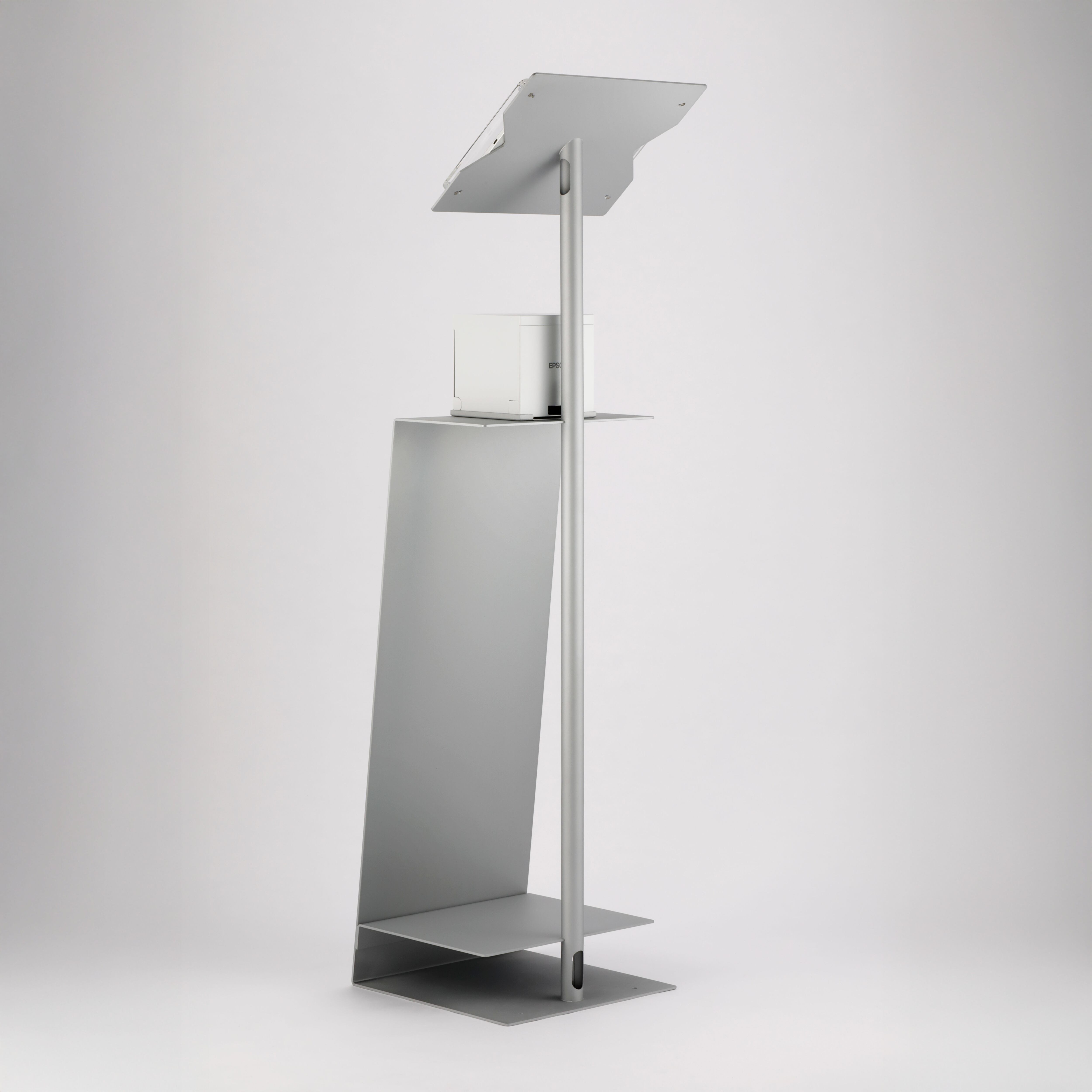 iPadフロアスタンド『T4 Floor』は、発券プリンター用のトレイを標準装備。