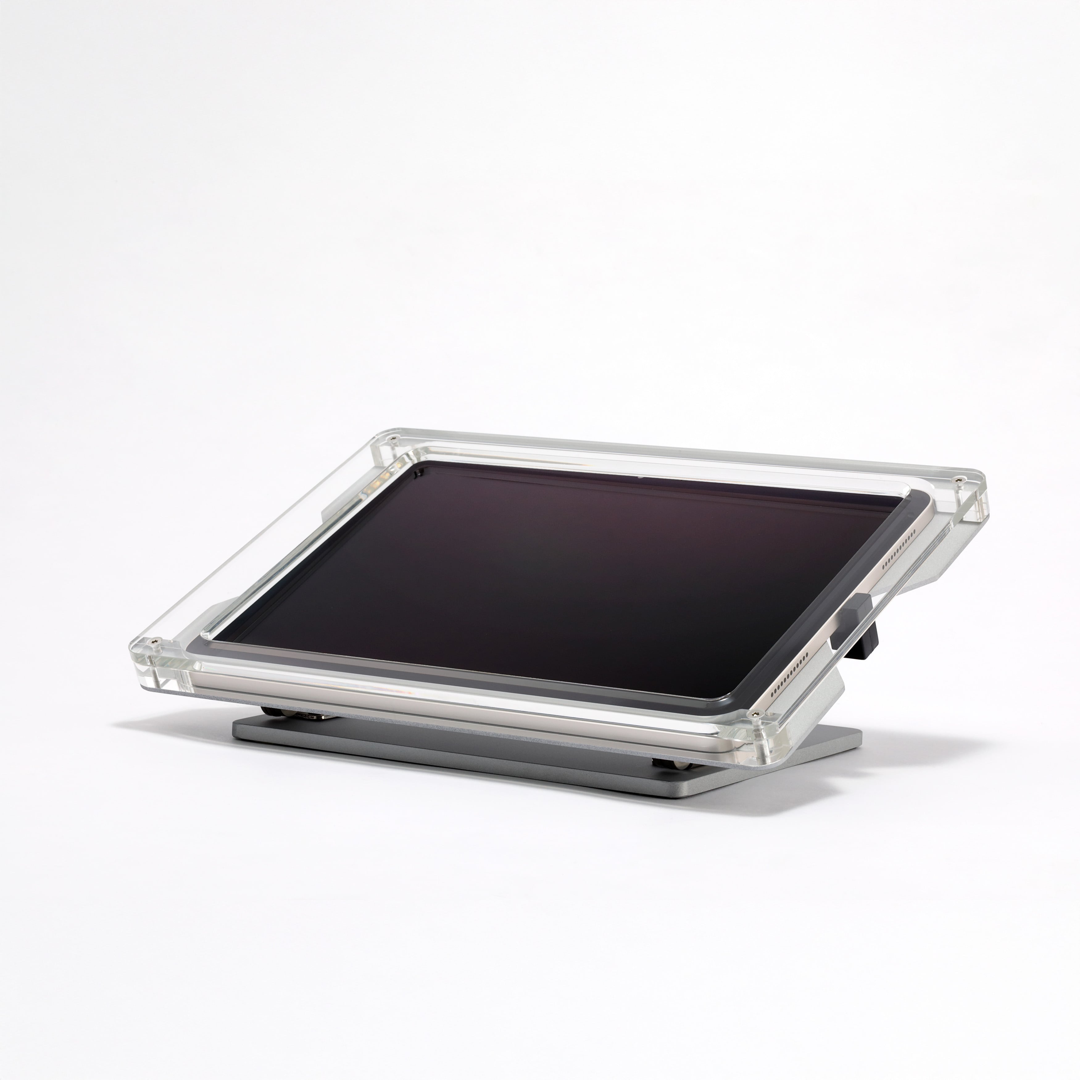 iPadをカウンターや卓上に固定して設置するためのスタンドです。