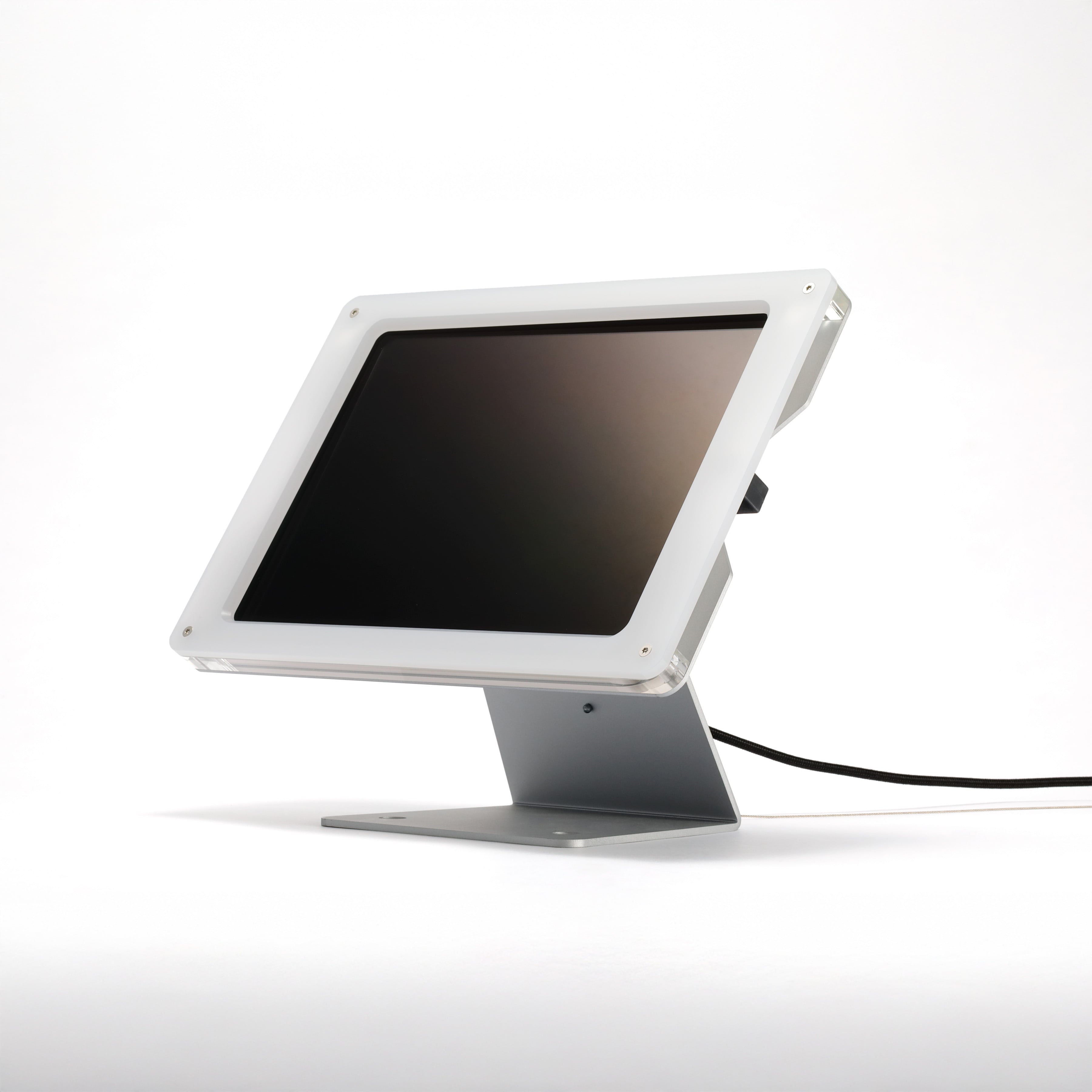 ホワイト(半透明)のアクリルが、iPadの印象をやわらかく整えます。